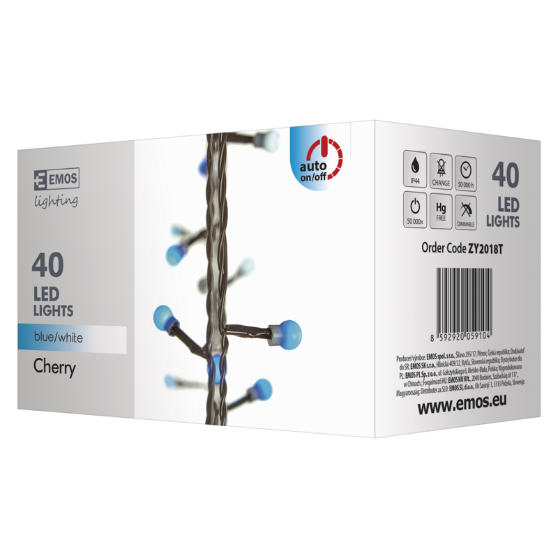 Technisches Datenblatt Vánoční řetěz – kuličky, 4m/ 40LED/modrá/bílá, časovač ZY2018T