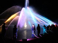 Osvětlení vodní fontány na hasičské slavnosti v Novém Oldřichově.